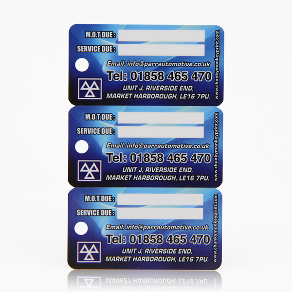 Our 3 in 1 barcode custom plastic key tags contains 3 smaller key tags. Each small key tag could be snap off from the combo ones. And the barcode on the key tags will be very clear.