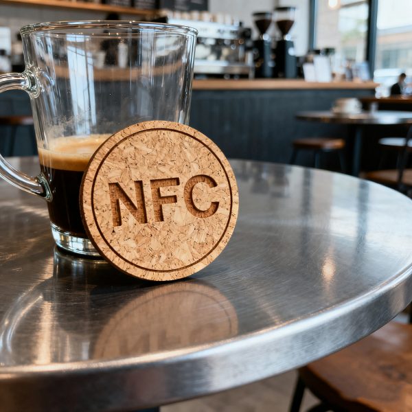 CXJ NFC Wooden Coaster Card can be equipped with NFC or RFID chips inside. The front and back of the card are protected with varnish or coating process to protect the pattern.