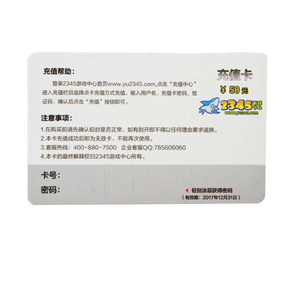 PVC Recharge Card Scratch Card