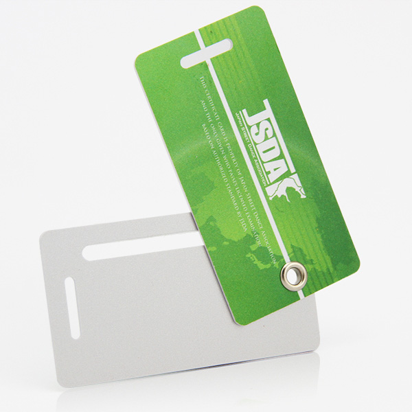 • 2 cards attached with a rivet plastic PVC luggage tags
