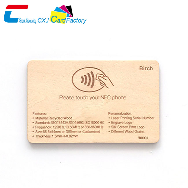 CXJ programmable wood card using double-sided coated paper, print gloss up to 95%, the card body positive, on the back with varnish or coating process to protect the printing surface graphic. The Wooden Card Printing of our company have years of  production, design, and service( we have three fully automated production lines and over 500 sophisticated employees.),give you a more professional experience.