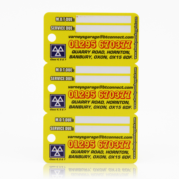 The combo barcode key tag plastic contains 1 key tag. The key tag could be snap off from the combo ones. And all the barcode on the card and tag will be the same. This is a great incentive marketing promotion.